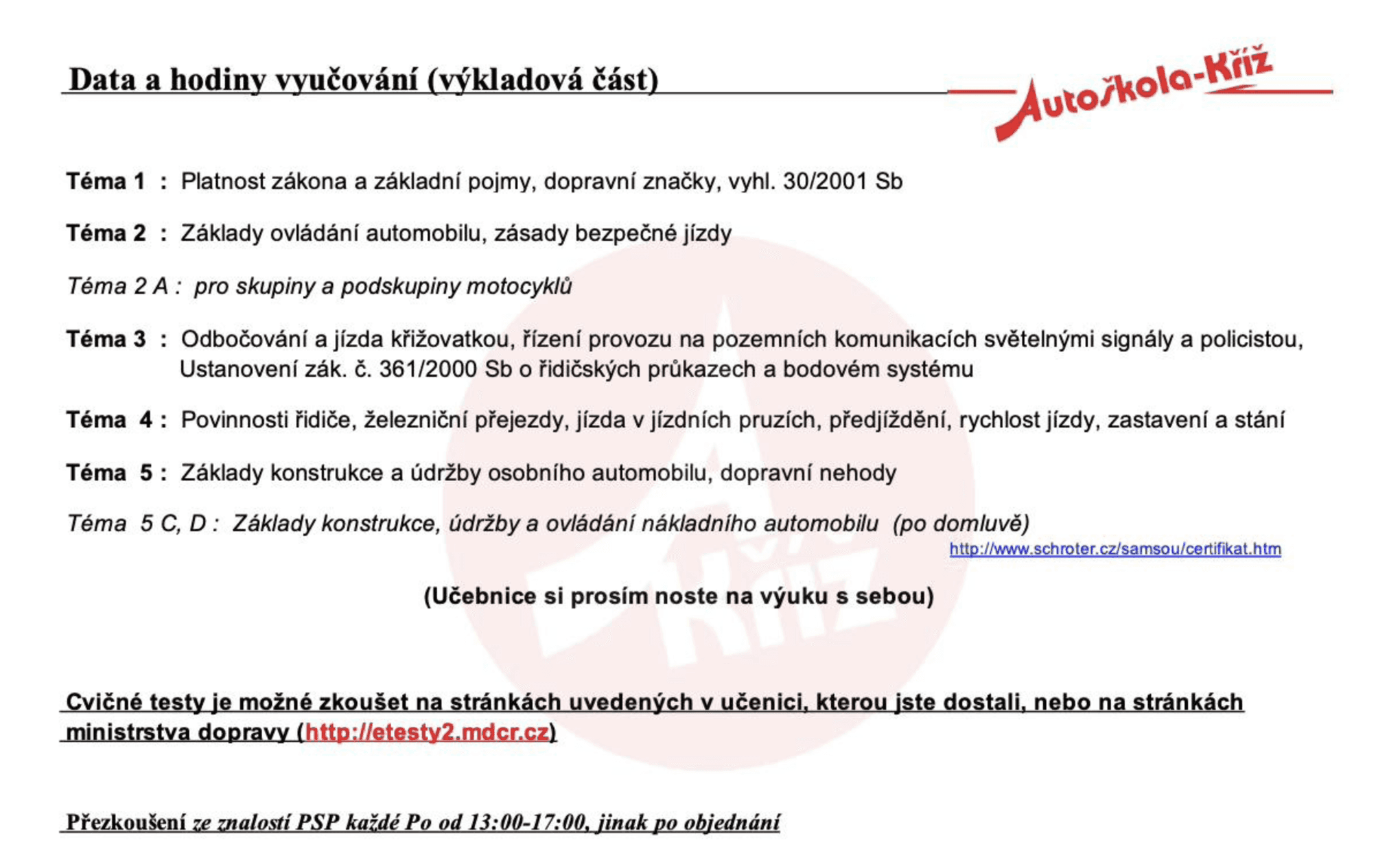 Jsme zavedená autoškola s 35 letou tradicí. Poskytujeme výcvik a rozšíření na všechna řidičská oprávnění.